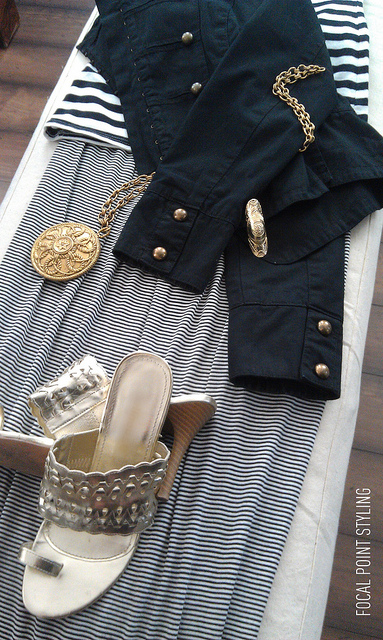 I love the inspirations pinning at Pinterest triggers.There you are, elbow on desk, head leaning on the palm of your left hand and happily clicking the mouse... pinning away with your right when you spot something. It triggers a memory of something you use to do, and then you start a search (this takes both hands). After searching, you're thrilled to discover a few other pins with the same thought. This occurred over the weekend for me while pinning the oh so popular STRIPES trend. The pinning triggered a reminder of things I already have and I said - "Hey, I can do that!" And wallah! A new look from an old trend (back in the 90's) and existing pieces is reborn... Stripes On Stripes.