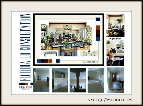 My before photos of room, inspiration images (from Elle Decor and later Pinterest), and the concept created on Olioboard.com.